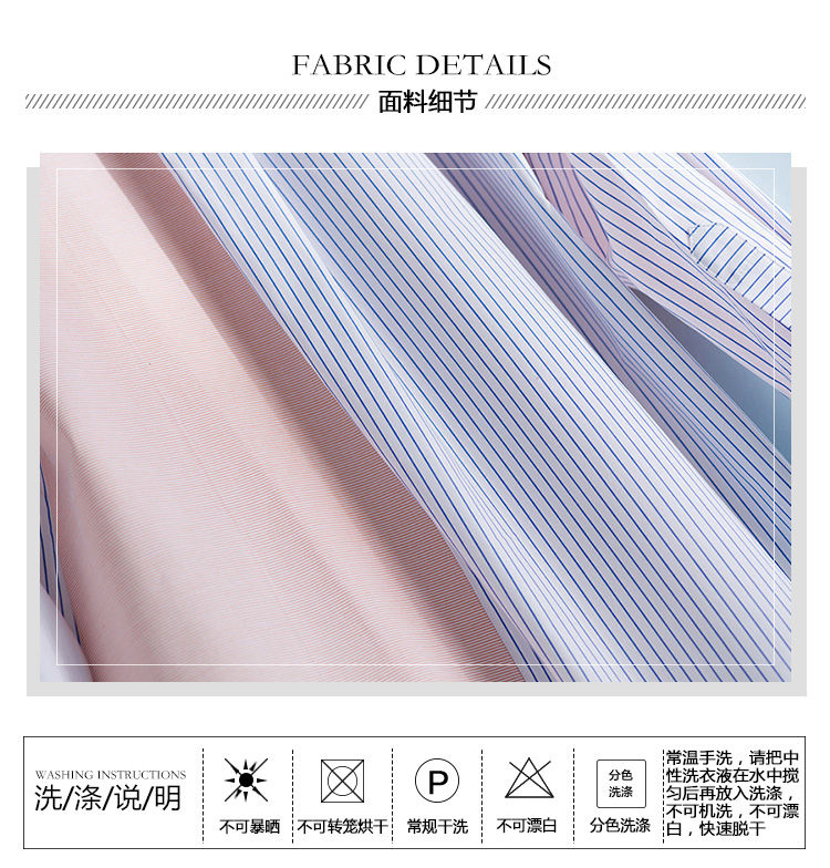 当前位置:厦门富岩网络科技有限公司 > 商品网购 > 女士服装/内衣 > 衬衫 >  夏季新款女士拼接上衣中长款条纹衬衫女长袖小立领粉色衬衣女